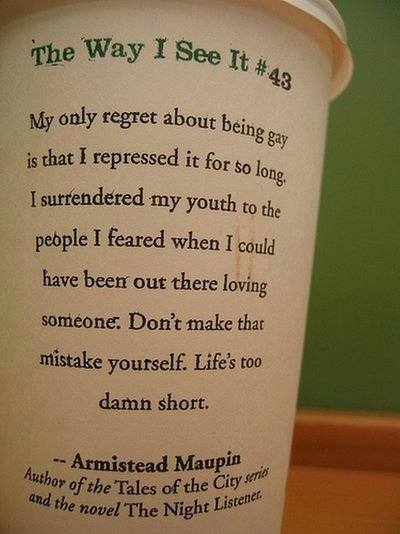 “My only regret about being gay is that i repressed it for so long. I surrendered my youth to the people I feared when i could have been out there loving someone. Don’t make that mistake yourself. Life’s too damn short” – Armistead Maupin, Author of the Tales of the City series and the novel “The Night listener”