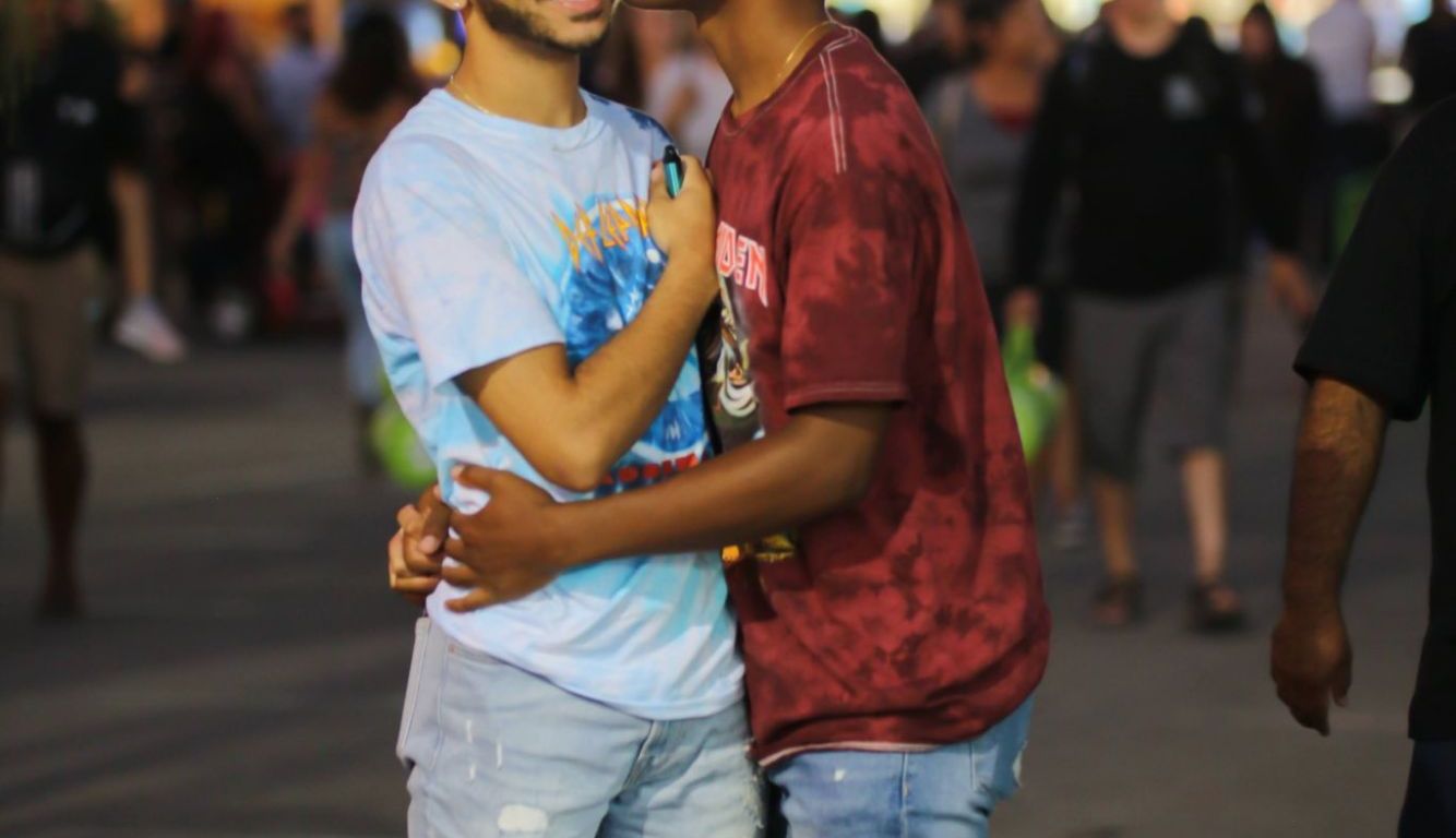 Under the awning of a closed bookstore, they paused. The rain danced around them, neon lights flickering in puddles. Jamie looked up, eyes bright and uncertain. Leo leaned in — not too fast, not too slow — and kissed him.