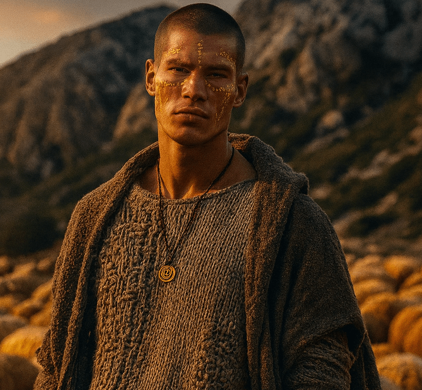 On the sun-scorched slopes of the southern Greek islands, where thyme and rock meet the sea wind, a nomadic shepherd named Theros wandered. He was born under a rare eclipse, marked by golden tattoos that shimmered when the sun touched his skin. The villagers whispered that he was chosen — not by fate, but by the old gods who still lingered in the stones and storms.
